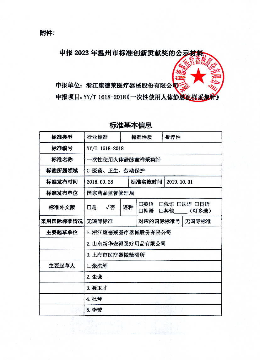 關(guān)于我公司開(kāi)展溫州市標(biāo)準(zhǔn)創(chuàng)新貢獻(xiàn)獎(jiǎng)的情況公示